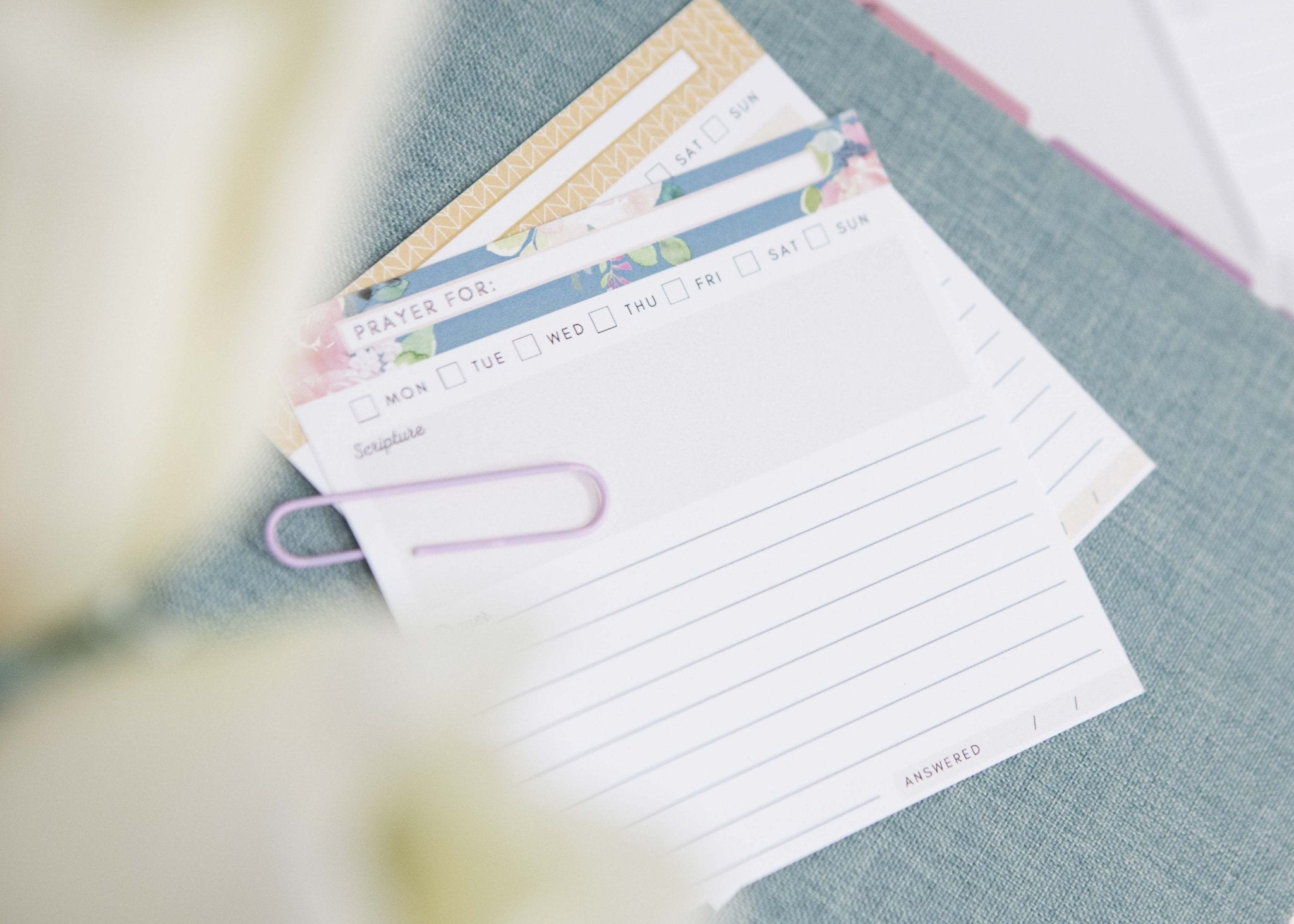 Create intentional prayer strategies for each day of the week with a set of these prayer cards. Each card includes a place for the name or area, allows you to choose the day(s) of the week you're committing to pray, a place for Scripture covering this area, and an area to write a prayer or prayer points. Designed to take with you, these prayer cards are sure to keep your daily prayers intentionally powerful and organized.